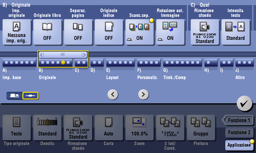 Fare clic su [Applicazione] - [Originale] - [Scans.sep.] e impostare su [ON].