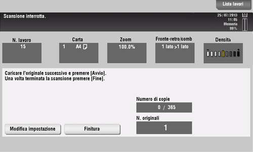 Una volta scansionati tutti gli originali, fare clic su [Finitura] e premere il tasto Avvio.