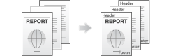 Aggiungere la data, l'ora e altro testo desiderato nei margini superiore e inferiore (intestazione/piè di pagine) della pagina specificata. È necessario registrare in anticipo nella macchina le informazioni da aggiungere per l'intestazione e piè di pagina.