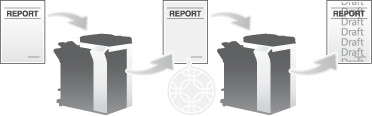 Testo come "Copy" e "Private" è stampato nel motivo di sfondo come testo nascosto. Questa funzione è chiamata Copy Protect.