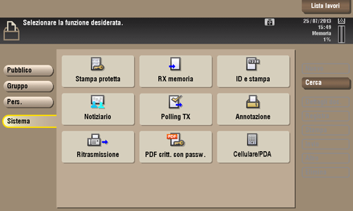 Quando si stampa un file PDF protetto da password, il file è memorizzato nella casella PDF crittografato con password. Per stampare dei file dalla casella PDF crittografato con password, fare riferimento a Qui.