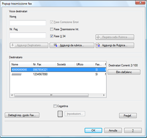 Per cancellare un destinatario, selezionarlo e fare clic su [Elim.dall'elenc].