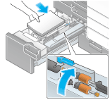 Sollevare i rulli di alimentazione carta e caricare la carta con il lato desiderato rivolto verso l'alto.