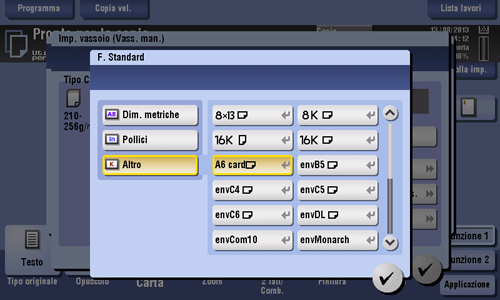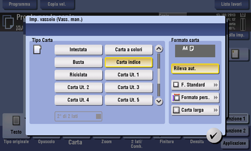 ] - [Modif. imp. vassoio] - [Tipo Carta] - [Busta].