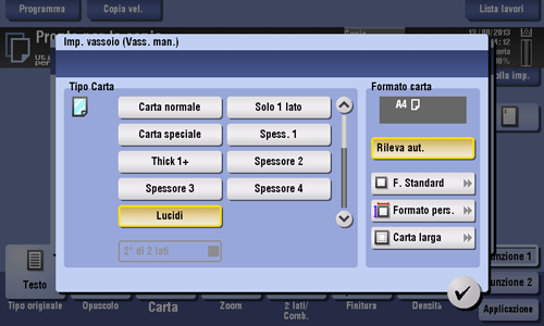 ] - [Modif. imp. vassoio] - [Tipo Carta] - [Lucidi].