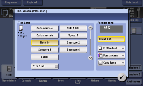 ] - [Modif. imp. vassoio] - [Tipo Carta] - [Spess. 1].