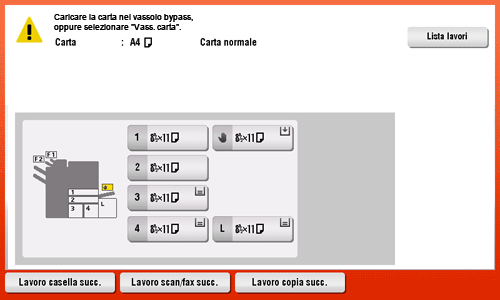 Se la carta si esaurisce durante la stampa, viene visualizzato un messaggio di richiesta di aggiunta carta. Aggiungere carta mentre si verifica il formato e il tipo di carta, oppure selezionare un altro vassoio carta.