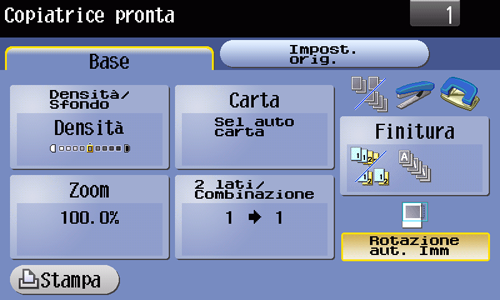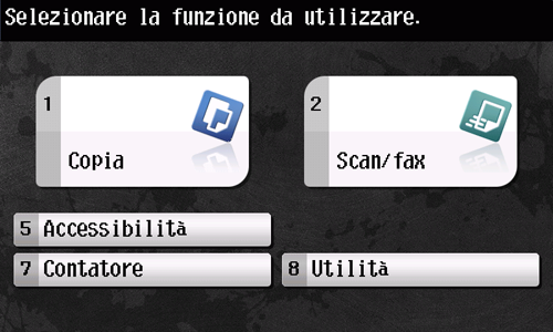 Questa funzione configura un Layout dello schermo focalizzato sulle funzioni di uso comune, che consente ad un utente con difficoltà di visualizzazione dello schermo normale di eseguire facilmente le operazioni. Per tornare alla schermata normale, premere nuovamente [Visualizzazione ingrandita] (Ingrandimento).
