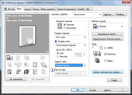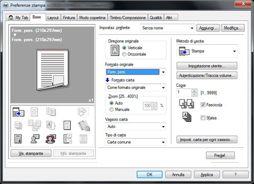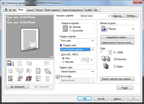 Da [Formato originale] oppure [Formato carta] sulla scheda [Base], selezionare [Form. pers.].