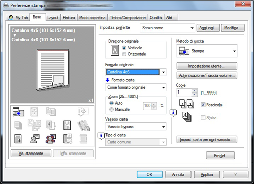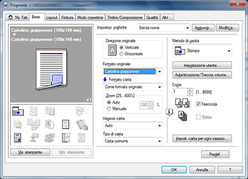 In [Formato originale] sulla scheda [Base], selezionare [Busta] oppure [Cartolina giapponese].