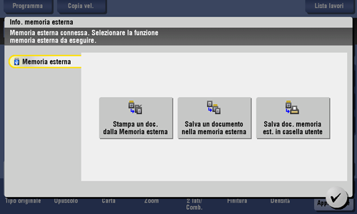 Lo stato autenticazione può essere [Attivo(MFP)], [Attivo(Server Est.)], [Attivo(MFP) + Attivo(Server Est.)], [Attivo(Server avanzato)] oppure autenticazione [Attivo(MFP) + Attivo(Server avanzato)]. Per ulteriori dettagli, contattare l'amministratore di questa macchina.
