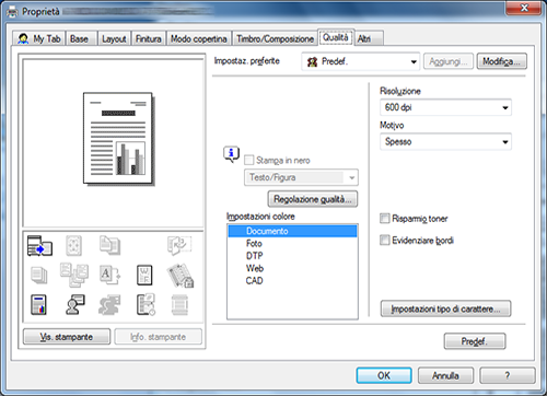 Sulla scheda [Qualità], selezionare [Impostazioni tipo di carattere].