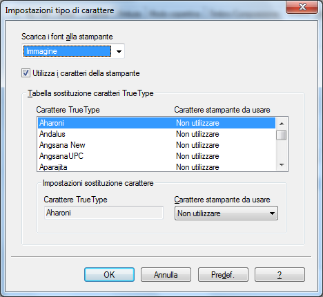 Selezionare [Immagine] da [Scarica i font alla stampante], quindi fare clic su [OK].