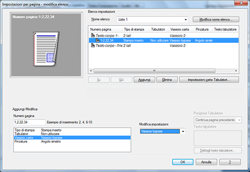 La pinzatura centrale è abilitata per la finitura tipo opuscolo.
