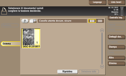 Il documento di stampa protetta viene stampato e automaticamente cancellato dalla Casella utente docum. sicuro.