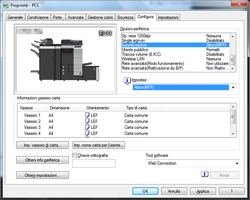 Da [Opzioni periferica] sulla scheda [Configura], selezionare [Autenticazione], quindi selezionare lo stato autenticazione da [Impostaz.].