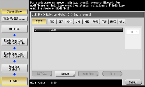 Fare clic su [Utilità], quindi selezionare [Registrazione Indir./Casella].
