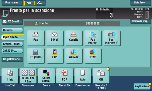 Premere [Scan/fax] e selezionare un tipo destinazione da [Input diretto].