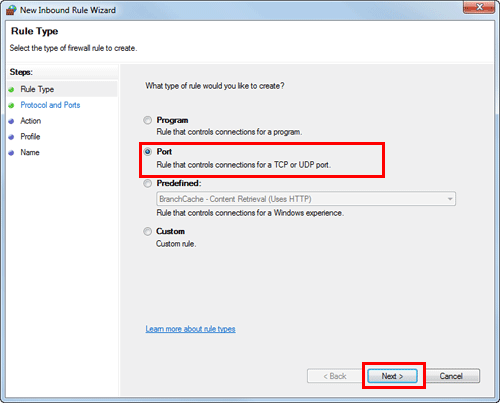 Selezionare un protocollo, inserire il numero di porta in [Porte locali specifiche], quindi fare clic su [Succ.].