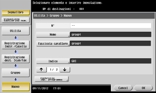 Selezionare [Registrazione dest. Scan/Fax] - [Gruppo].