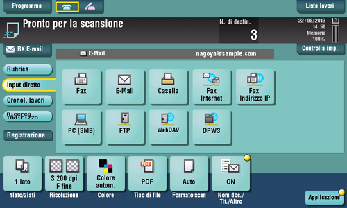 Premere [Scan/fax] e selezionare un tipo destinazione da [Input diretto].