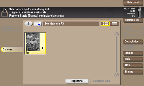 Il fax è stampato ed eliminato automaticamente dalla Box Memoria RX.