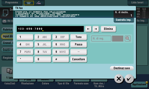 [Num fax] | Inserire il numero fax della destinazione utilizzando la tastiera. |