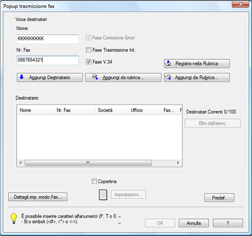 Inserire il nome e il numero di fax della destinazione, quindi fare clic su [Aggiungi Destinatario].