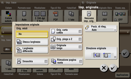 Premere [Applicazione], quindi selezionare [Imp. originale].