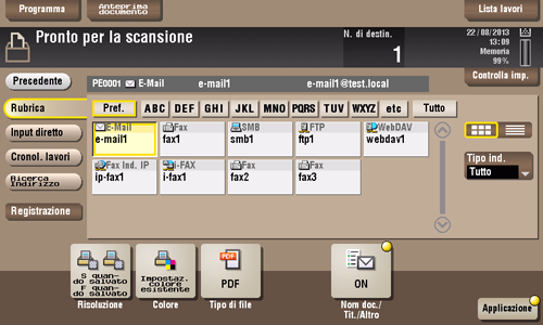Impostare la destinazione e modificare le impostazioni per le funzioni di fax/scansione.