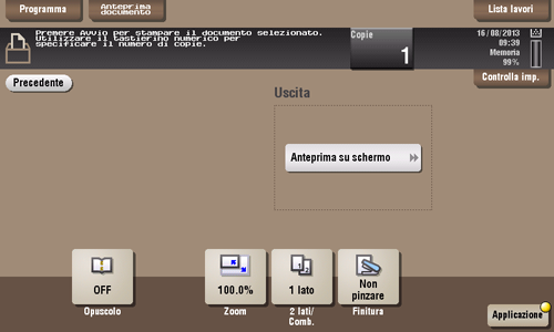 È possibile modificare le impostazioni di [Zoom], [2 lati/comb.] e [Finitura].