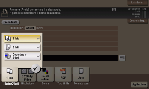 Si possono modificare le impostazioni per le opzioni [Risoluzione], [Colore] e [Nom doc./Tit./Altro].