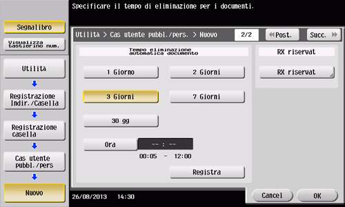 È inoltre possibile impostare il periodo di conservazione del file per una casella utente al momento di registrazione della casella utente.