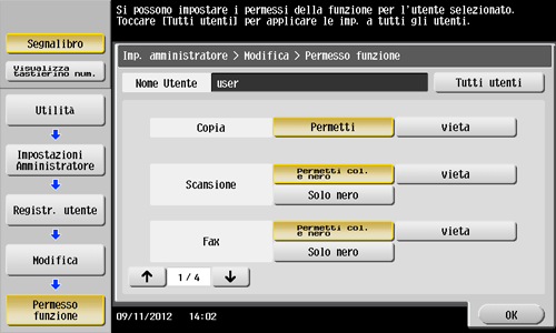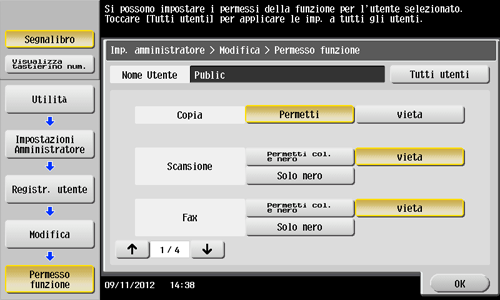 Premere [Permesso funzione] per impostare il limite delle rispettive funzioni.