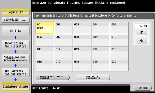 Per eseguire il reset dei contatori di tutti gli utenti, premere [Resettare tutti contat], selezionare [Sì], quindi premere [OK].
