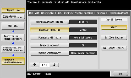 Selezionare [Accesso pubb. ut], quindi [Sì (Con Login)] oppure [Sì (Senza Login)], quindi premere [OK].