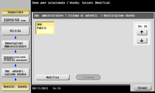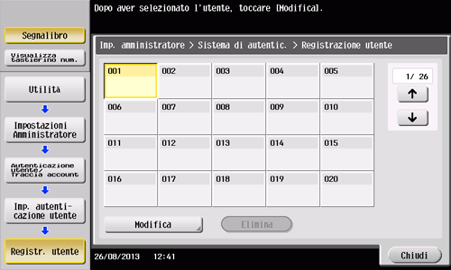 Selezionare [Imp. autenticazione utente] - [Registr. utente].