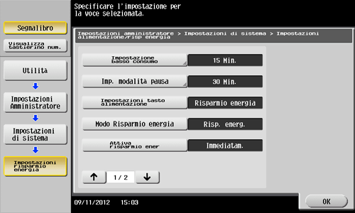 Selezionare [Impostazioni di sistema] - [Impostazioni risparmio energia].