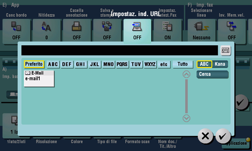 [Corpo e‑mail] | Se necessario, modificare il testo del messaggio e-mail. Se è stata registrata una frase fissa per il testo del messaggio, è possibile selezionare il testo del messaggio tra quelli registrati. |