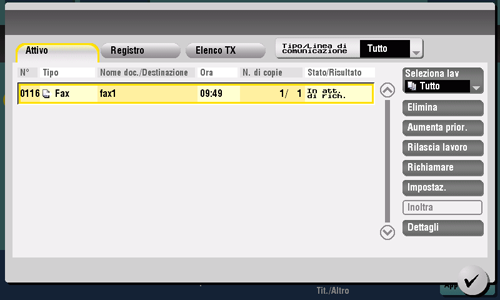 I lavori il cui reinvio è in sospeso, sono inviati nuovamente in modo automatico una volta trascorso un determinato periodo di tempo, utilizzando la funzione "Richiama automaticamente". È tuttavia possibile reinviare il fax in modo manuale.