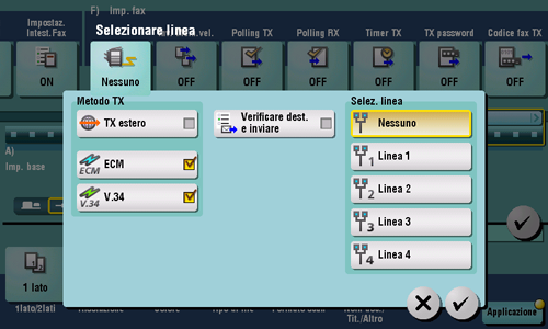 Fare clic su [Applicazione] - [Imp. fax] - [Selezionare linea].
