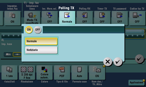 Fare clic su [Applicazione] - [Imp. fax] - [Polling TX], e infine [ON].