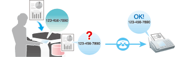 La funzione Contr. destin. & invia controlla il numero di fax specificato per la trasmissione del fax confrontandolo con il numero del fax remoto (CSI) e invia il fax solo in caso di corrispondenza.