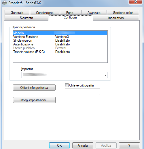 Se non sono state configurate correttamente, selezionare [Autenticazione] oppure [Traccia volume (E.K.C)] dall'elenco, quindi modificare la relativa impostazione in [Impostazione].