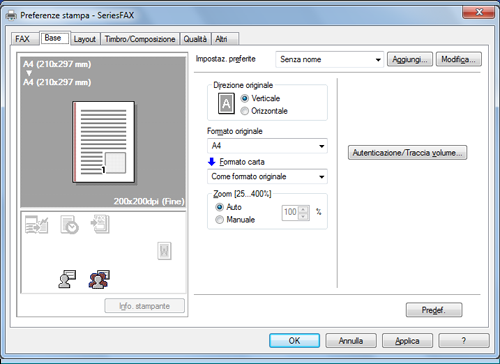 Nella scheda [Base] fare clic su [Autenticazione/Traccia volume...].