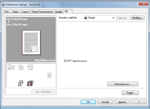 Aprire la scheda [Configura] del driver fax e assicurarsi che l'autenticazione utente o la traccia account siano state impostate correttamente.