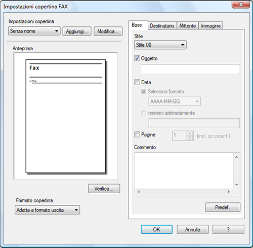 Quando si apre la schermata del [Popup trasmissione fax] e si seleziona la casella di controllo [Copertina], è possibile aggiungere una copertina al fax da inviare.