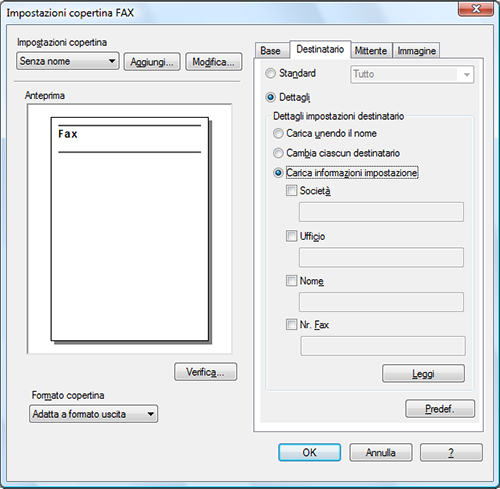 Aprire la scheda [Destinatario] e selezionare il formato [Standard] oppure [Dettagli] della destinazione.