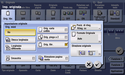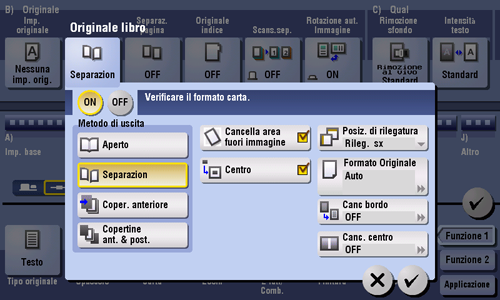 [ON]/[OFF] | Selezionare [ON] per specificare Originale libro. |