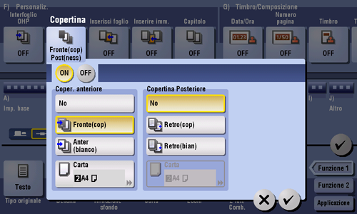 [ON]/[OFF] | Selezionare [ON] per specificare Copertina. |